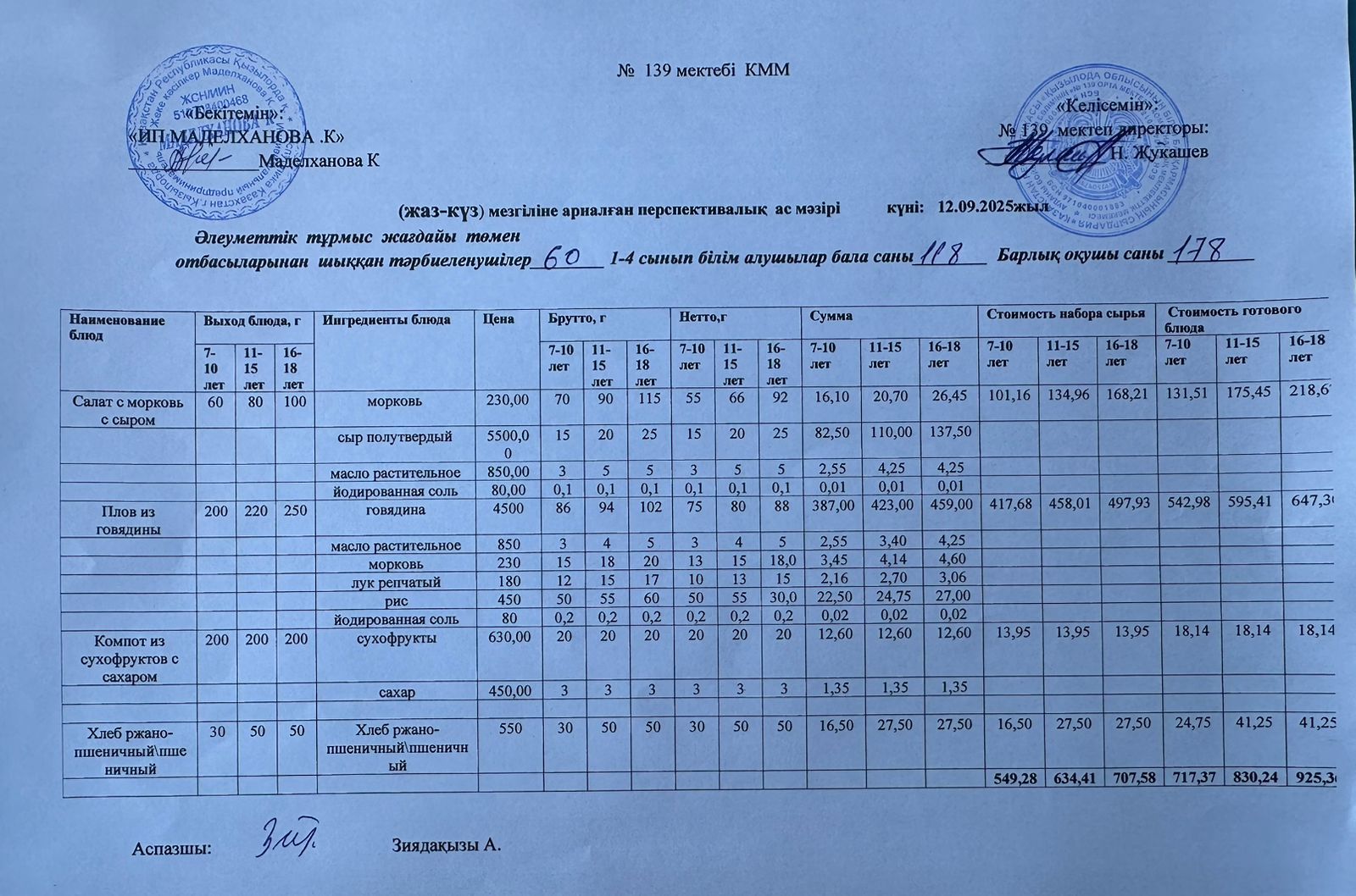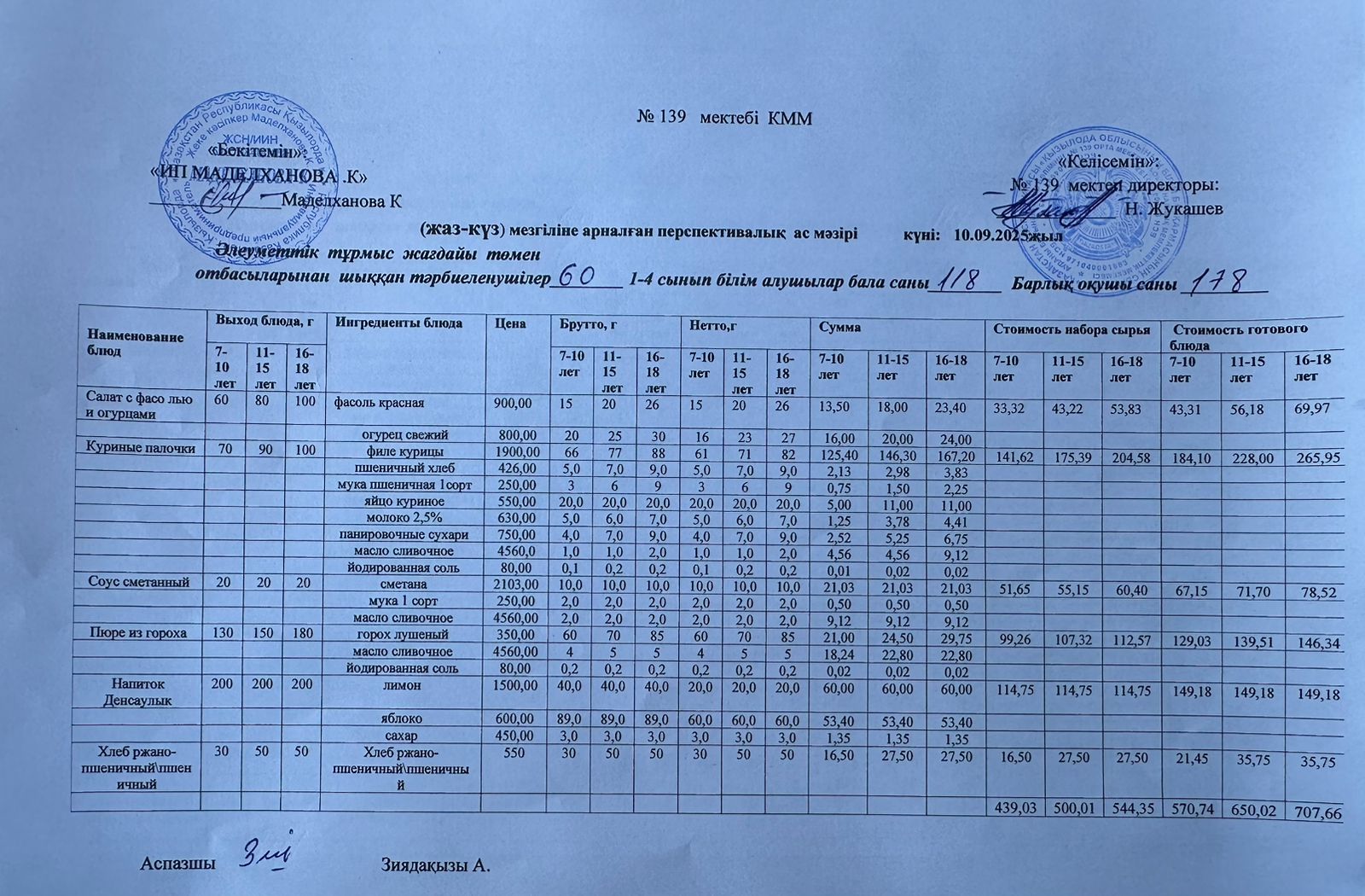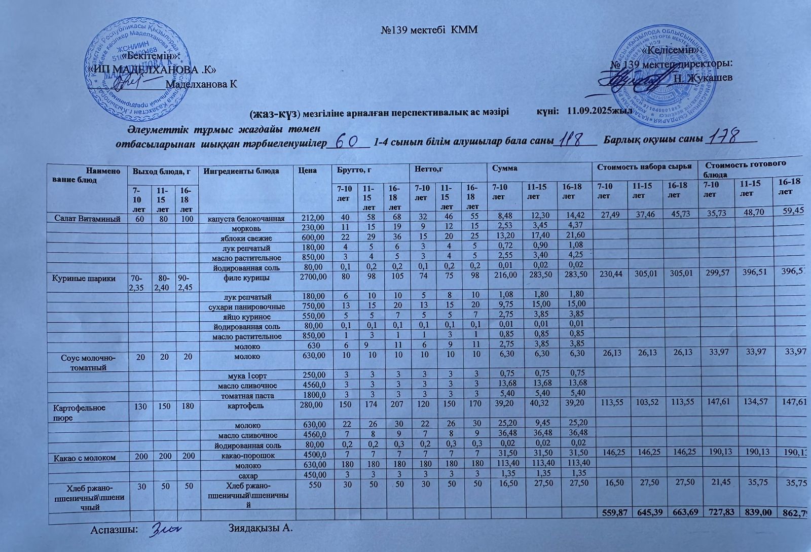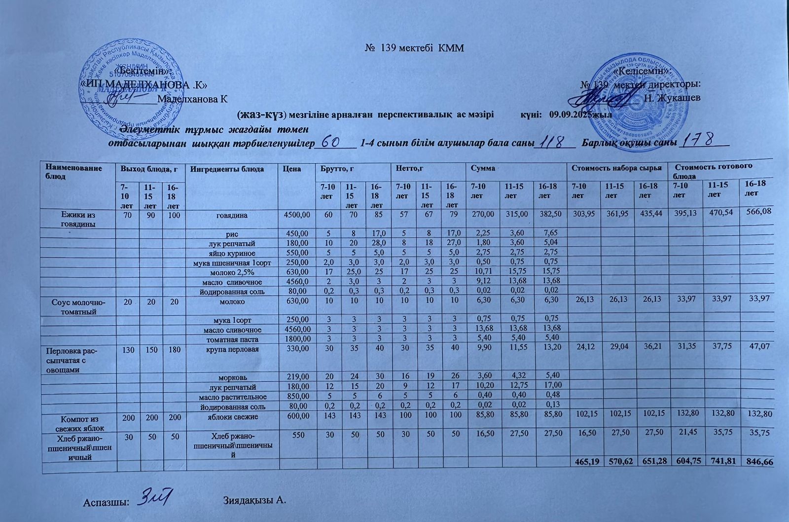 Ас мәзірі 08-12 қыркүйек » №139 орта мектеп